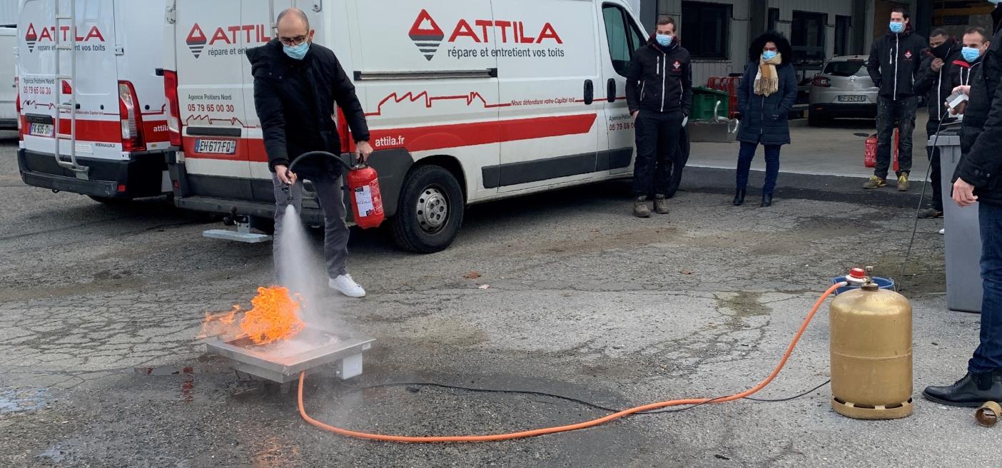 Récemment l'équipe ATTILA de Poitiers Nord responsable d’agence, chargés de clientèle et techniciens de toiture ont participé à une journée de formation sur la sécurisation contre les incendies.