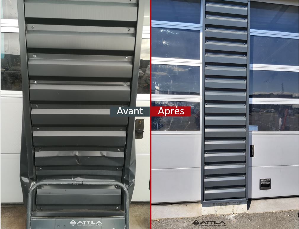 Les bardages sont fréquemment endommagés notamment les quais de livraison qui sont mis à rude d’épreuve par les flux de circulation (transport logistique, livraison …). Dans ce cas il faut procéder à un remplacement d’une pièce en acier laqué.