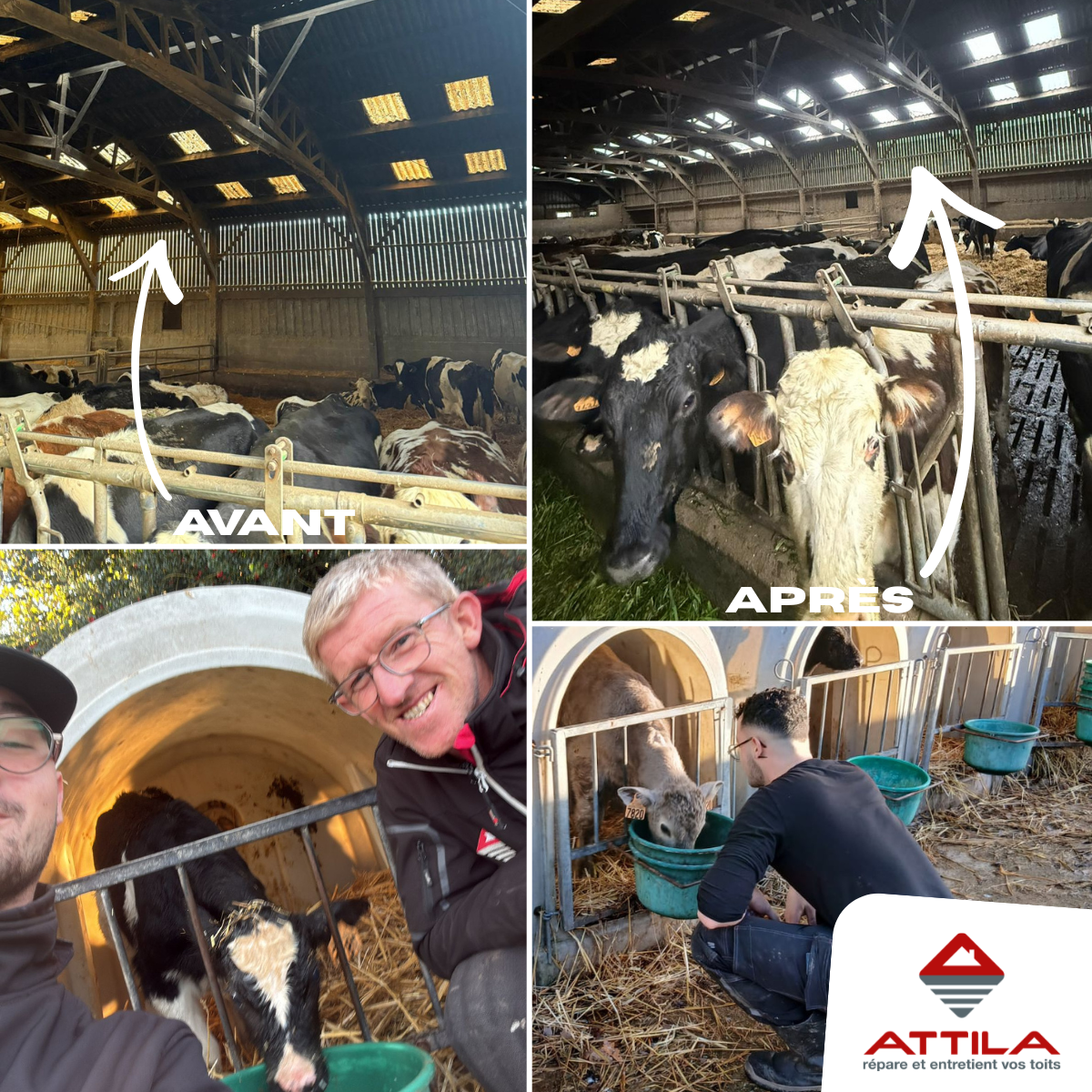 Que vous soyez éleveur, agriculteur ou exploitant, vous pouvez compter sur ATTILA pour garder votre toiture en pleine forme.Une intervention rapide, un diagnostic clair, un travail soigné : bref, tout ce qu’il faut pour que votre bâtiment reste fiable, sécurisé et fermier-approved.