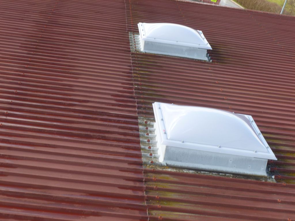 Vous pouvez voir sur cette photo par exemple le remplacement de dômes. Remplacer des dômes percés par la grêle est une évidence, l’avantage est double puisque cette opération permet de gagner 70% de lumière par rapport aux anciens dômes ternis par le temps. Cet apport de lumière en intérieur permet de générer des économies d’énergie parfois considérables.