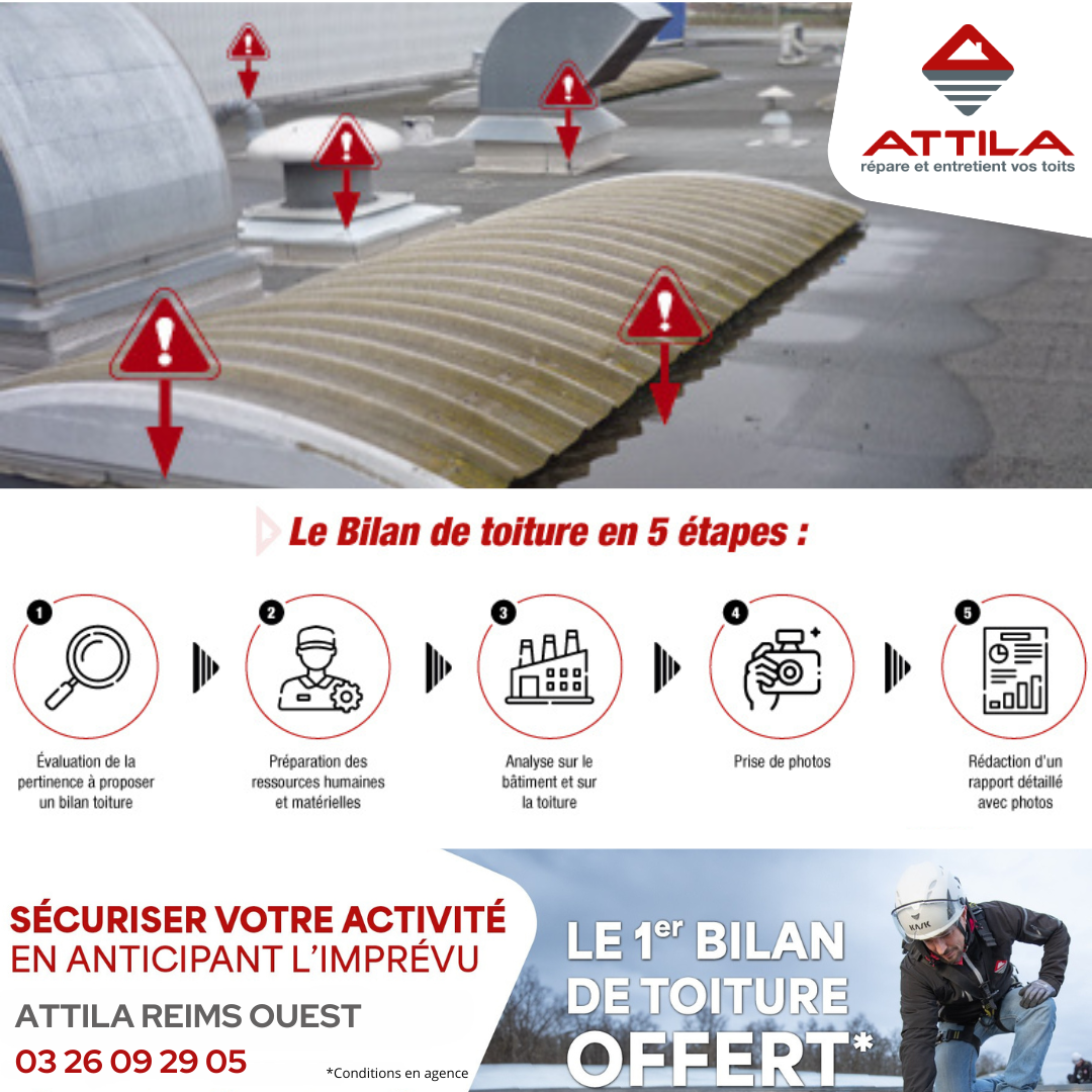 En ce moment, l’agence ATTILA REIMS OUEST vous offre* votre premier bilan de toiture.