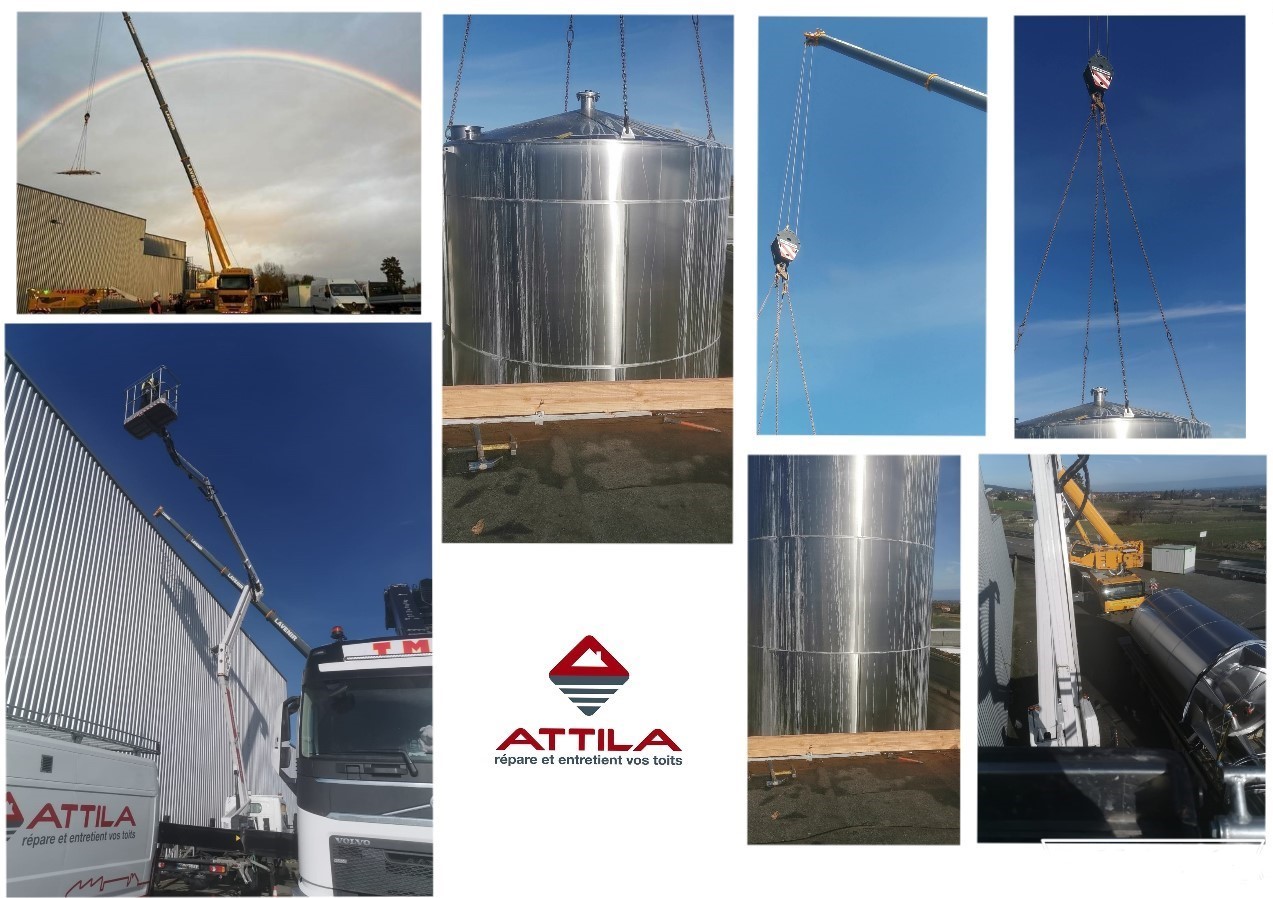 Les équipes de l’agence ATTILA ROANNE ont employé les grand moyens pour répondre à la demande particulière d’un client basé à Saint Alban les Eaux. Il fallait extraire une cuve par le toit du bâtiment en réalisant au préalable une ouverture de la partie de la toiture, au millimètre près ! Il a fallut déployer du matériel adapté pour atteindre le toit, puis l’intérieur du bâtiment, soulever et sortir la cuve, la déposer et enfin refermer le toit dans les règles de l’art. Cette opération a nécessité une grande organisation, et des processus de sécurité stricts, notamment pour les intervenants.