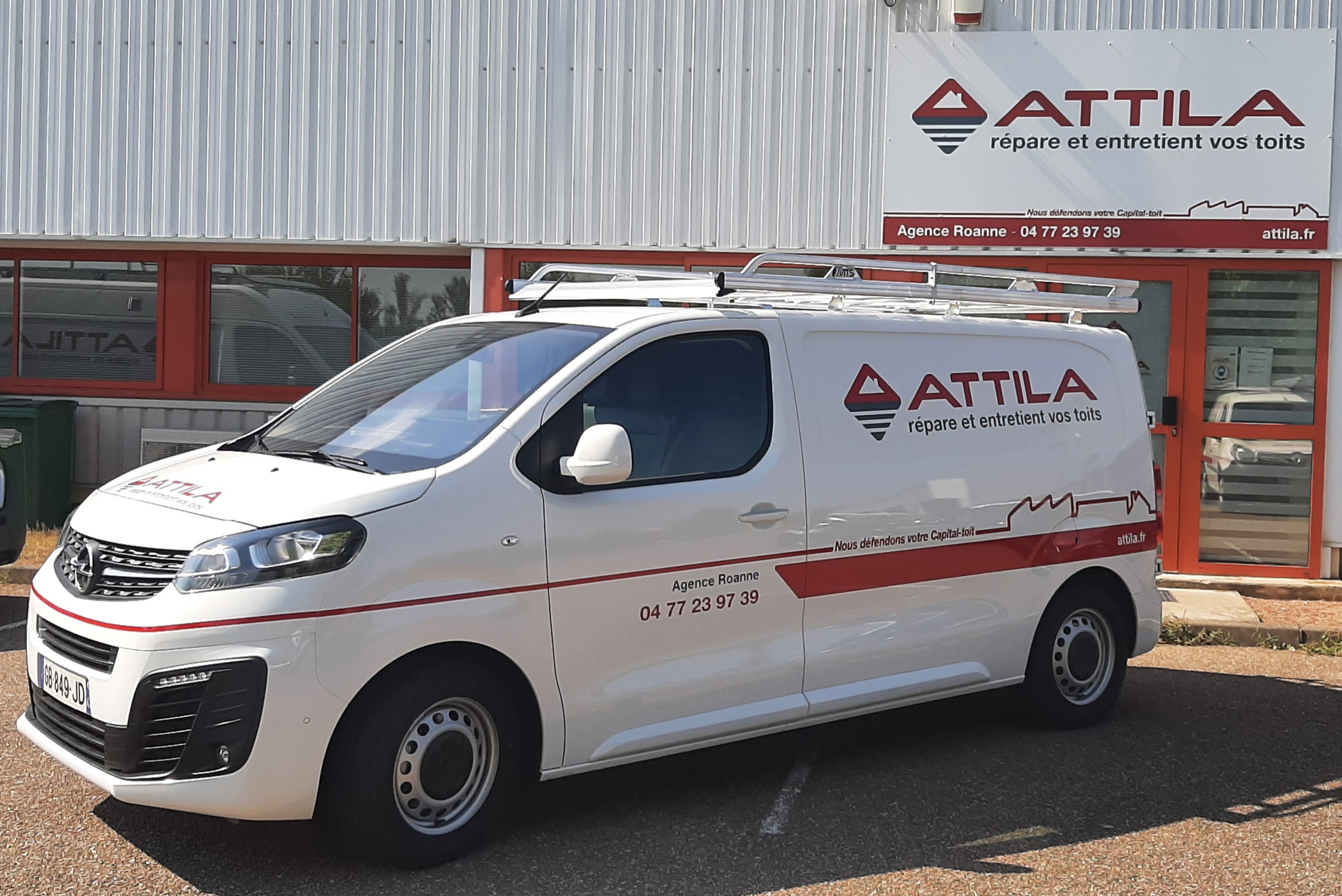 En plus de notre propre nacelle et autres véhicules, nous venons d’acquérir un utilitaire pour nos déplacements chez nos clients. Nos Techniciens de Toiture ATTILA ainsi que les Chargés de clientèle adoptent des réflexes incontournables lors de leurs visites. Etre en tenue ATTILA et avoir un véhicule logoté, propre et rangé en fait partie. Agir en tant que défenseur du Capital-toit, c’est avant tout associer savoir, savoir-faire et savoir-être.