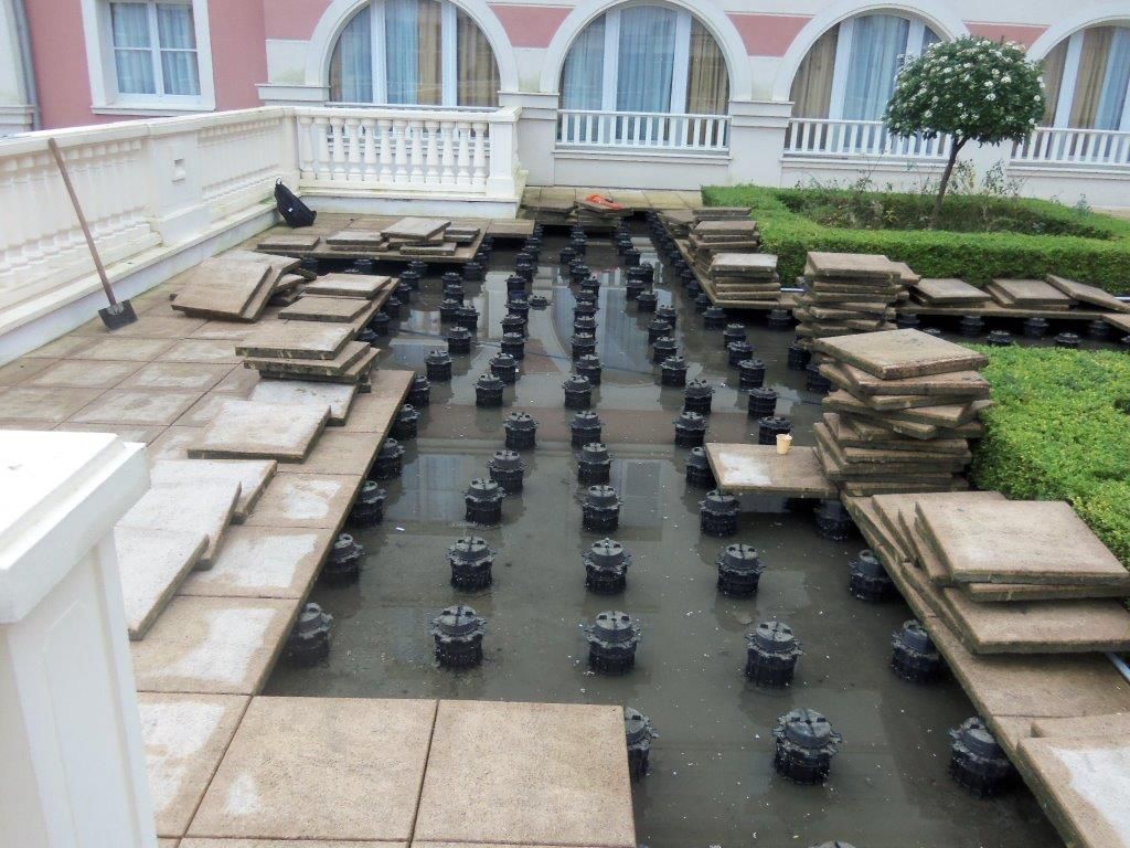 Un simple nettoyage n’était donc plus d’actualité, mais heureusement que les propriétaires ont fait appel à notre agence, car en cette saison où la pluie s’intensifie, les conséquences auraient pu être catastrophiques. Il a donc fallu commencer par enlever les dalles pour pomper l’eau stagnante. Une fois l’eau retirée, l’équipe a pu déboucher les évacuations, nettoyer la terrasse et remettre les dalles en place.