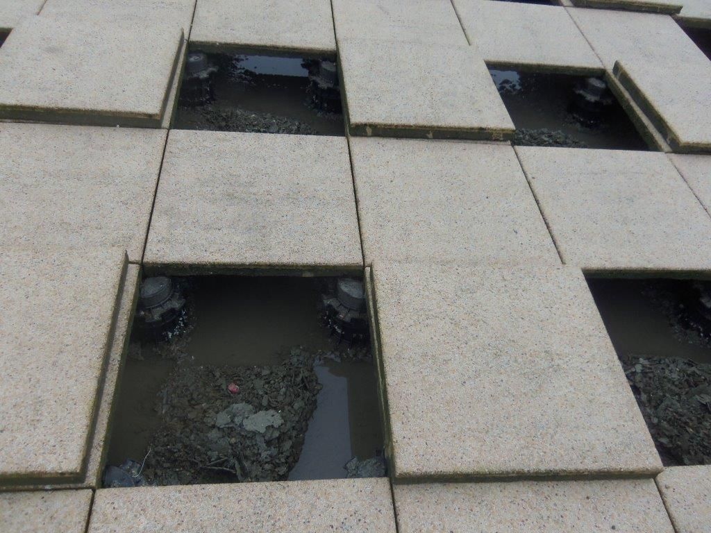 Imaginez que pendant des mois, de l’eau mais aussi des déchets, comme des papiers ou encore des mégots de cigarettes, se sont faufilés entre les dalles, formant des masses boueuses à certains endroits qui ont complètement bouché le système d’évacuation et fait monter le niveau de l’eau.