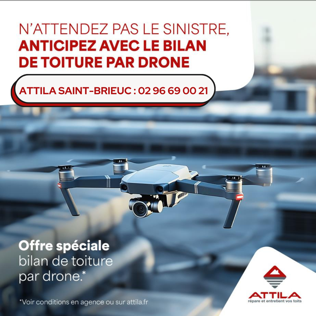 A l’agence ATTILA SAINT-BRIEUC notre priorité est de vous accompagner dans la préservation durable de votre toiture, qu’il s’agisse d’un bâtiment professionnel, d’un local industriel ou d’une habitation. Pour cela, nous proposons un bilan toiture complet, alliant savoir-faire et technologie de pointe.