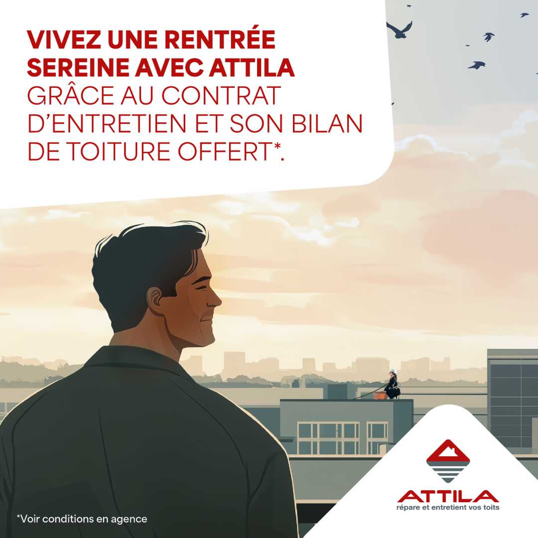ATTILA est le 1er réseau national spécialisé dans la réparation, l’entretien et la maintenance de tous les types de toits, qu’ils soient industriels, traditionnels, en terrasse ou amiantés.
