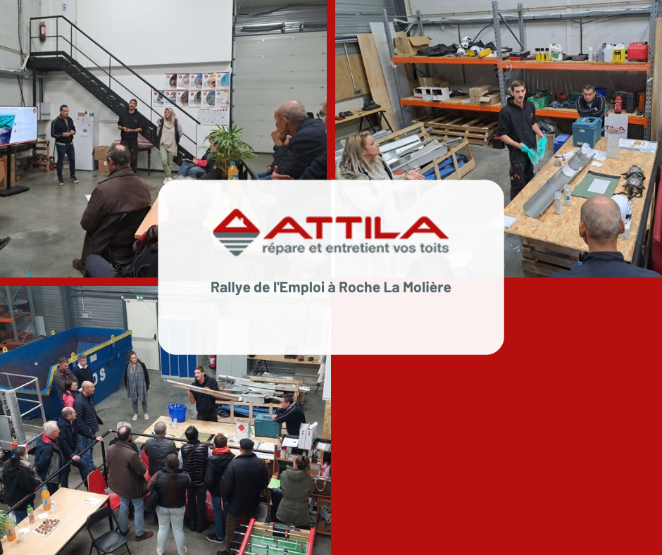 A l'occasion du rallye de l'emploi, le 16 novembre, l'agence ATTILA de Roche La Molière a accueilli une quinzaine de personnes, en recherche d’emploi ou de reconversion professionnelle, pour leur faire découvrir le métier de technicien de toitures ATTILA. Les questions ont été nombreuses et les personnes se sont montrées curieuses d’en savoir plus sur nos métiers tournés vers le rallongement de la durée de vie des toitures.