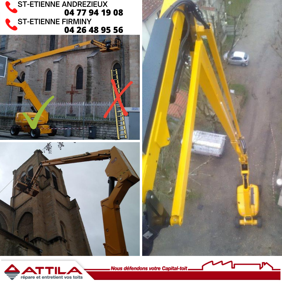Pour effectuer une intervention sur une église, Attila s’est équipé avec une nacelle de 32 mètres.