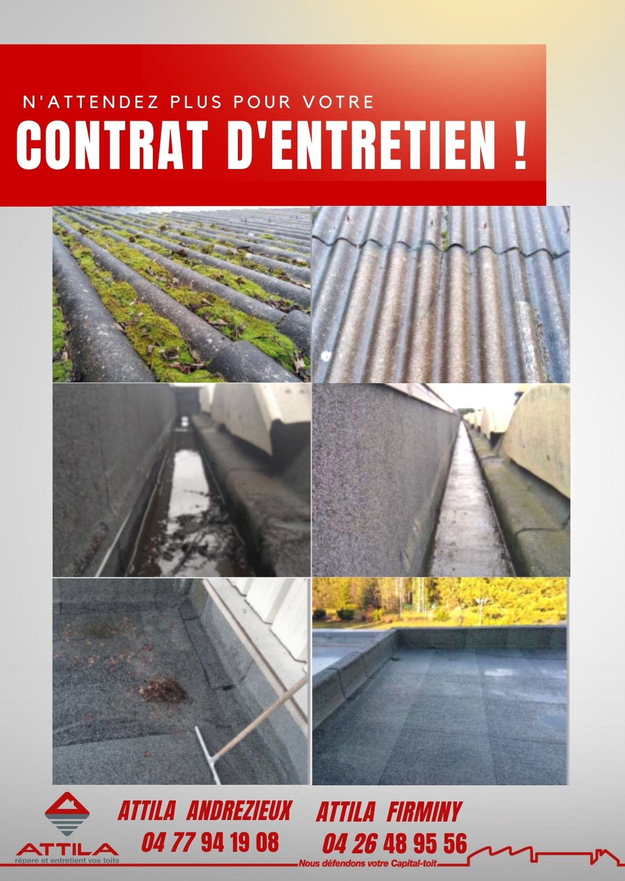 Soyez serein sur la gestion de votre toiture, et anticiper les réparations à venir. N’attendez plus, choisissez le contrat d’entretien ATTILA.