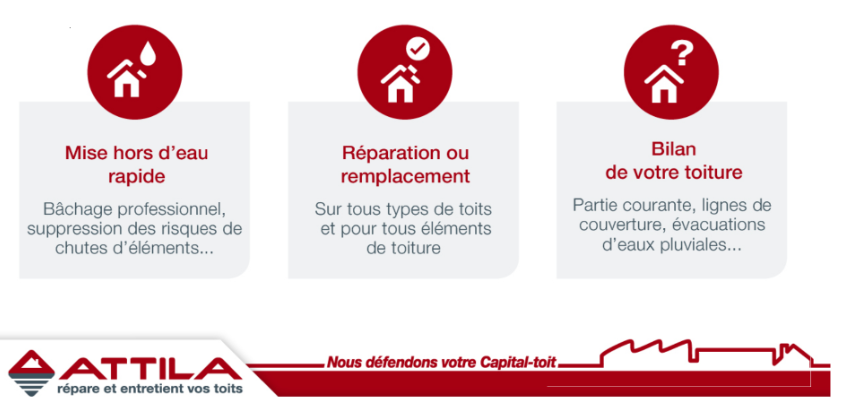 votre Agence Attila Saint-Étienne vous propose un bilan de toiture et des interventions de réparations.