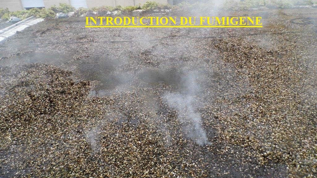 Ce dispositif permet d’insuffler sous l’étanchéité une fumée épaisse de couleur blanche inoffensive qui va se disperser sous le complexe d’étanchéité. Des carottages sont effectués afin de faire pénétrer ce gaz.