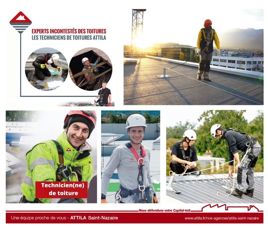 Les Techniciens de Toiture ATTILA ont rejoint l’agence ATTILA SAINT-NAZAIRE pour faire évoluer leur carrière vers un métier innovant dans le monde de la couverture, participer au développement d’un projet d’entreprise et s’y impliquer, apprendre, se former, développer leurs compétences et partager leurs expériences. Ils ont conscience tous les jours qu’ils sont les garants de la qualité de prestations réalisées au sein de l’agence.