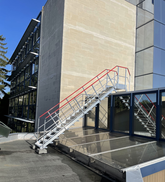 Une fois le positionnement de l’escalier validée, nos Techniciens Toitures Attila ont procédé à la fixation de l’escalier, des garde-corps et à la réalisation des travaux d’étanchéité.