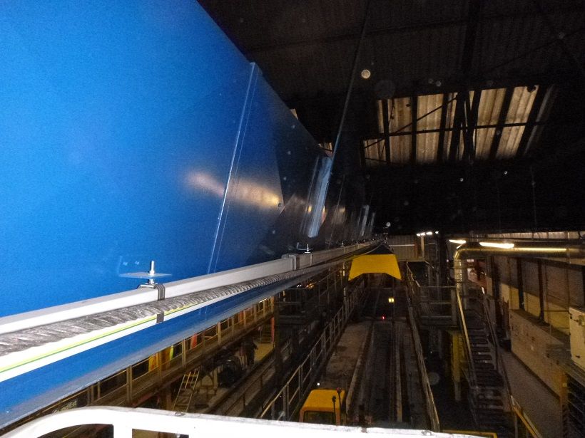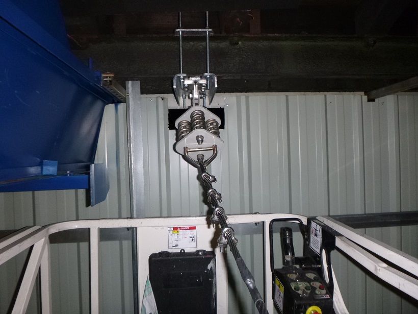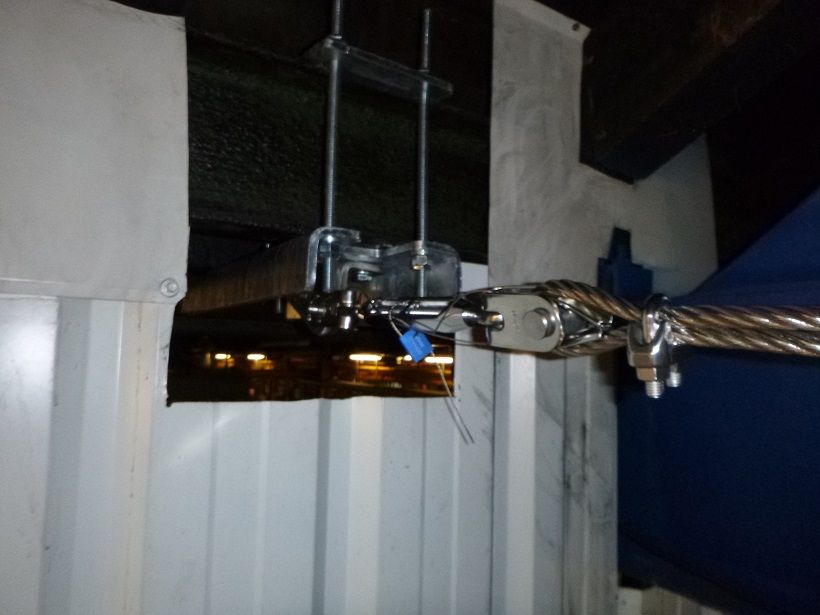 A la demande d'un Technicentre de la SNCF (Alsace) nous avons posé une ligne de vie renforcée (faible tirant d'air) sur une longueur de 32m fixée sur 2 points plus un intermédiaire pour sécuriser les interventions sur les "têtes" des locomotives.
