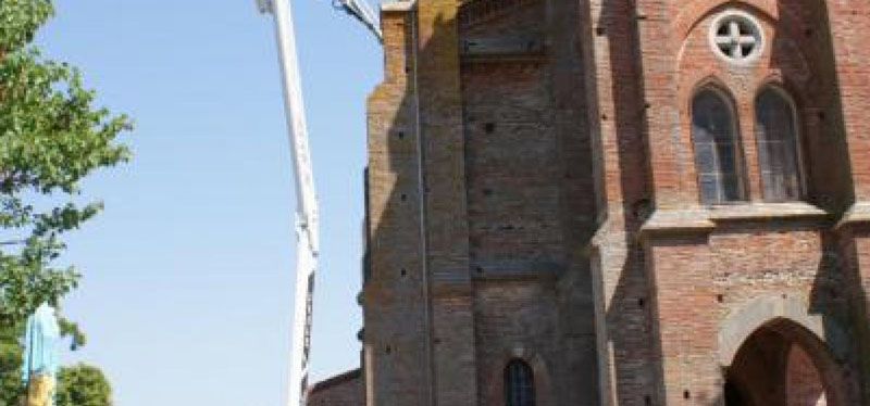 Notre équipe de couvreurs avec le camion nacelle ont éliminé la végétation qui au fil du temps s'était incrustée dans les gouttières et chéneaux de la toiture de l'église de Mondonville. Ils ont remis en place les tuiles déplacées et remplacé les tuiles fêlées.