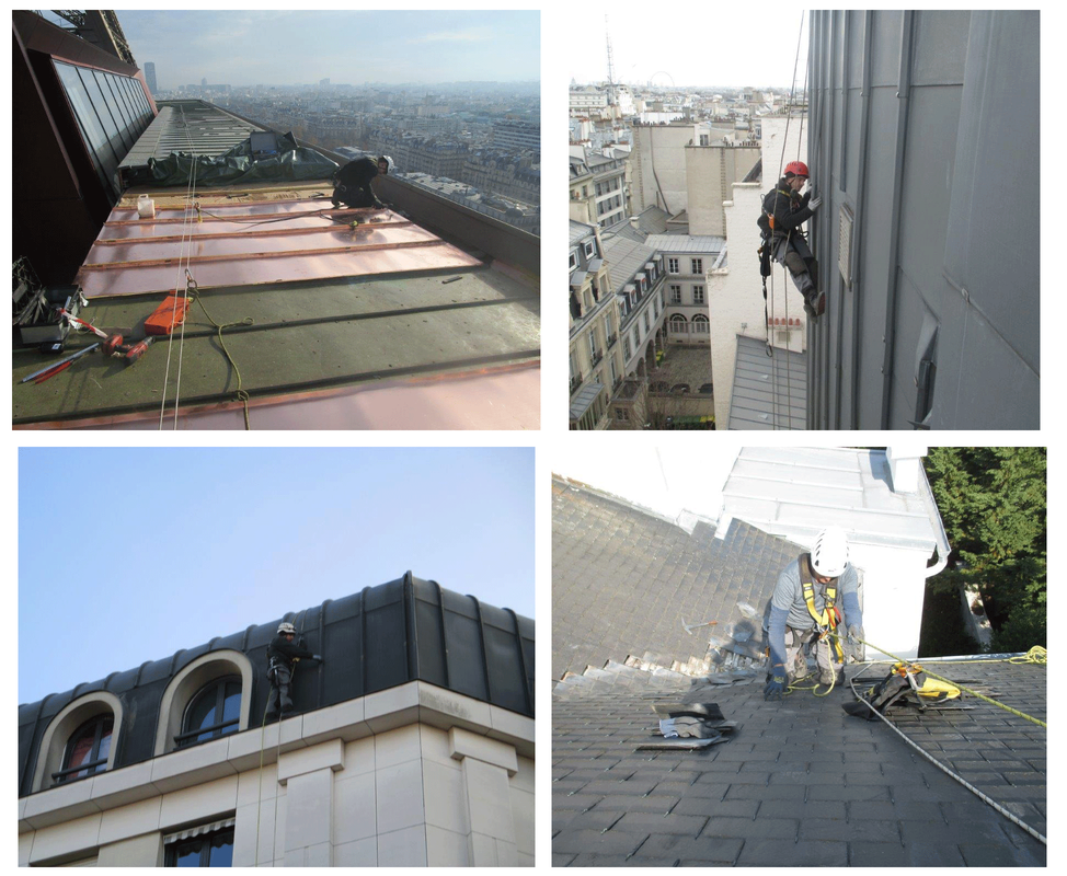 Nos couvreurs formés à travailler à la corde et équipés de tous les E.P.I (Equipement de Protection Individuel) nécessaires (casque, harnais, longe, point d’ancrage…) afin d’intervenir sur les toitures les plus inaccessibles pour pouvoir effectuer le travail de réparation et d’entretien de votre toit, sans utiliser d’échafaudage ni d’autres moyens d’élévation.