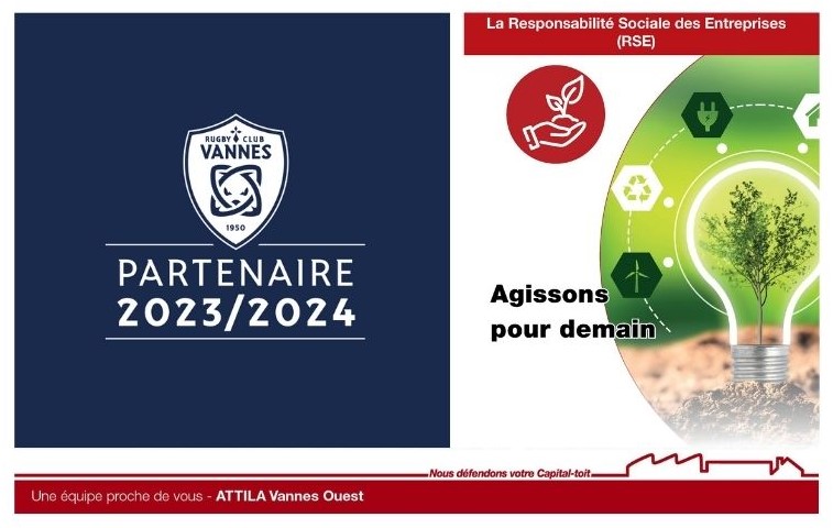 C’est ainsi que dans cette démarche sociétale l’agence ATTILA VANNES OUEST sponsorise le RCV, le Rugby Club Vannetais, plus couramment appelé le Rugby Club Vannes. Il est important de souligner que fondé en 1950, le club devient lors de la saison 2016-2017 le premier club breton à évoluer au niveau professionnel en raison de sa montée en Pro D2 en s’imposant face au Club de Massy avec un score de 32 à 31. Il évolue toujours dans cette catégorie aujourd’hui. Grâce à ce partenariat les collaborateurs de l’agence peuvent assister aux matchs pour supporter leur équipe locale.
