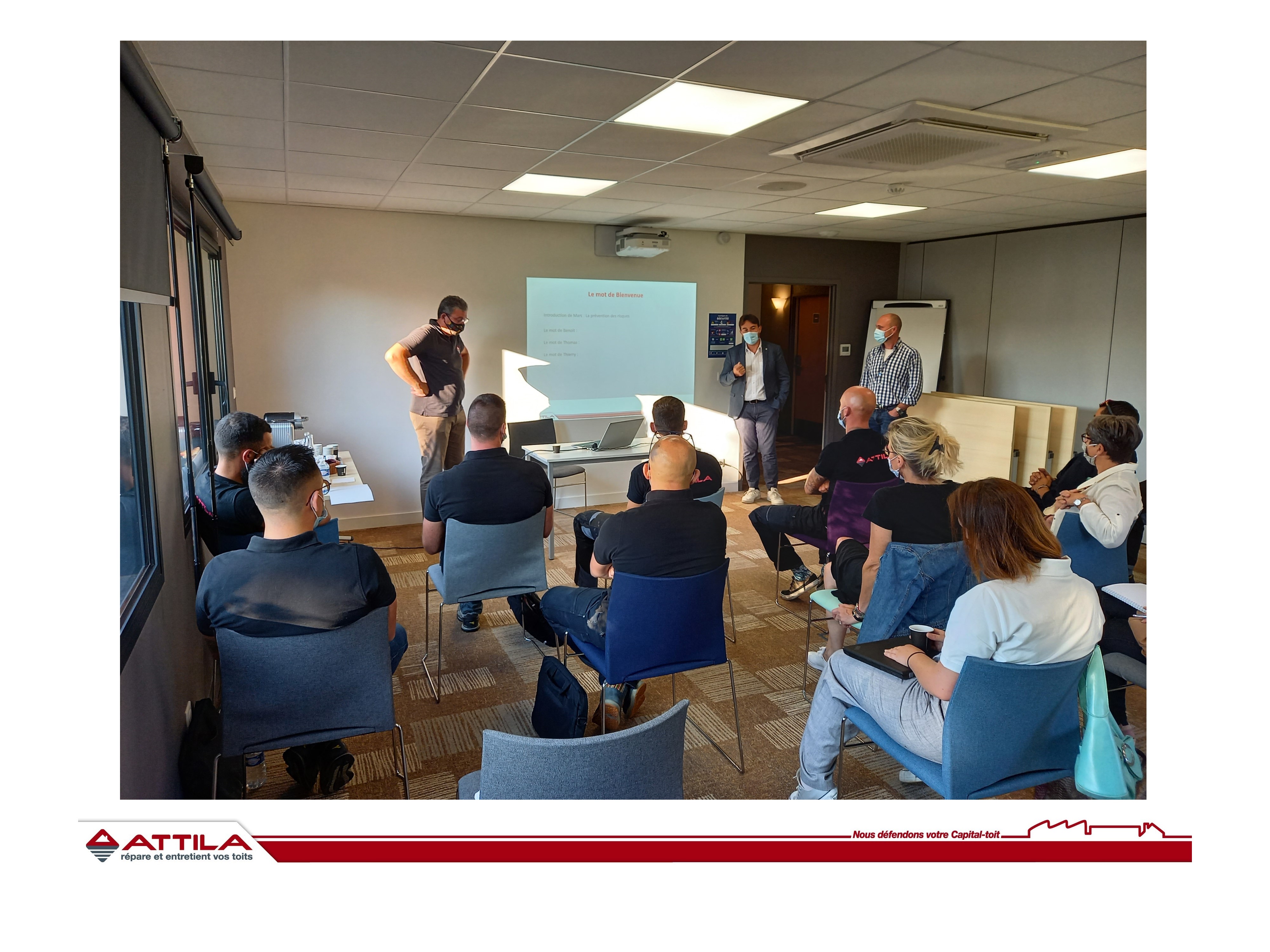 A l’agence ATTILA VILLEFRANCHE SUR SAÔNE, la prévention fait partie des sujets phares abordés lors des réunions avec les équipes. Ainsi, récemment tous les collaborateurs de l’agence ainsi que ceux de sa voisine de Bourg en Bresse étaient présents pour parler « stratégie de prévention » : techniciens de toiture, directeurs d’agence, assistantes, responsable administrative, comptable, chargés de clientèle et chargés d’affaires !