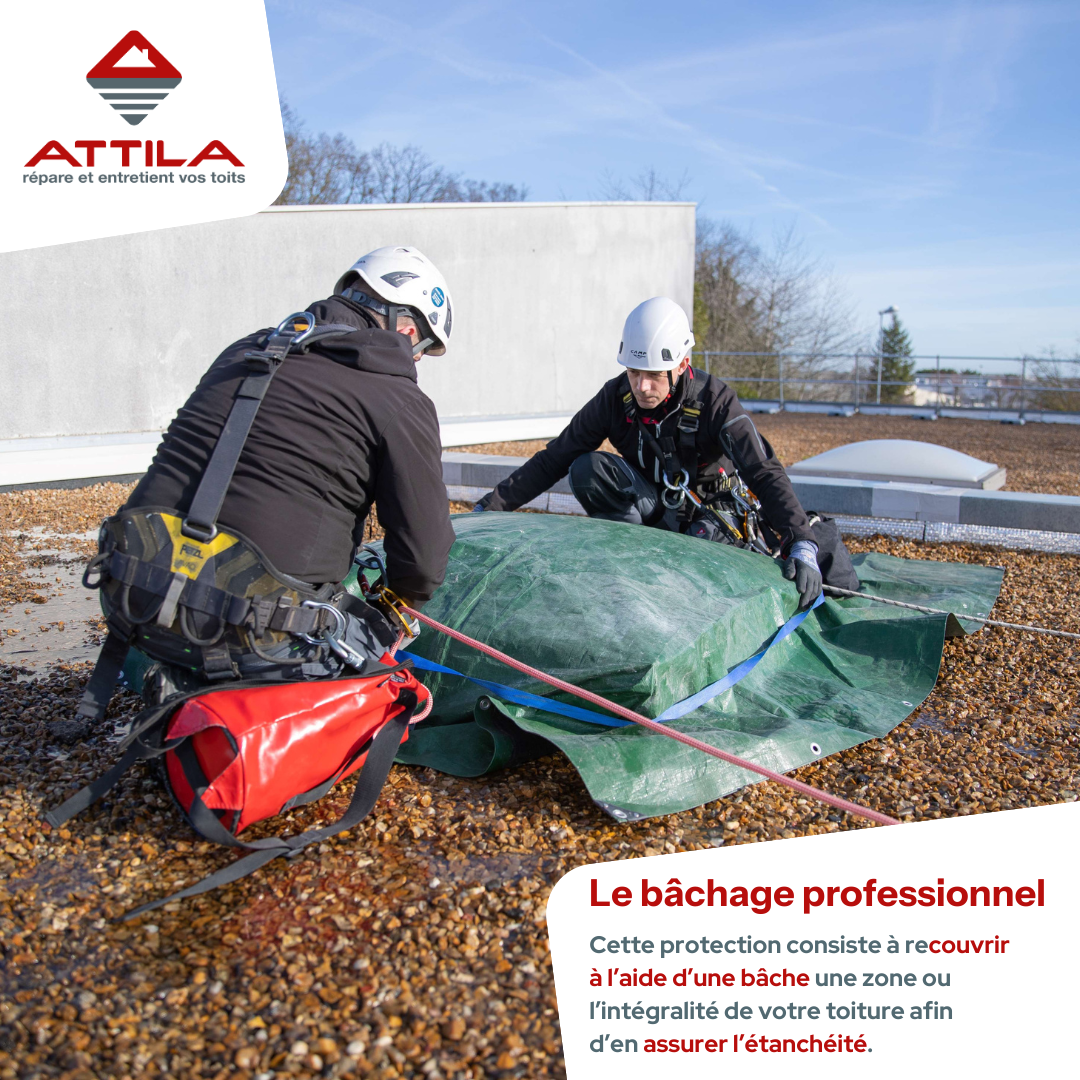 Nos Techniciens de Toiture ATTILA, formés en continu, sont à même de trouver une solution temporaire pour protéger votre patrimoine et votre activité. Cette intervention dite « mesure conservatoire » laissera le temps à nos équipes de trouver une solution de réparation définitive. De votre côté, vos services pourront avec sérénité effectuer les démarches auprès de vos assurances.