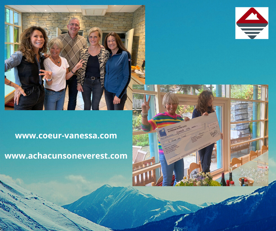 C’est ce magnifique combat que L’association CŒUR VANESSA, dirigée par Annick Laurent, a décidé de soutenir. Au travers de différents événements sportifs, CŒUR VANESSA récolte de l’argent et le reverse notamment à A CHACUN SON EVEREST afin d’aider à boucler le budget très important que nécessitent la création et l’entretien des installations, la fourniture d’équipements adaptés à la montagne de toutes les tailles, le logement et la nourriture de tous ces pensionnaires.