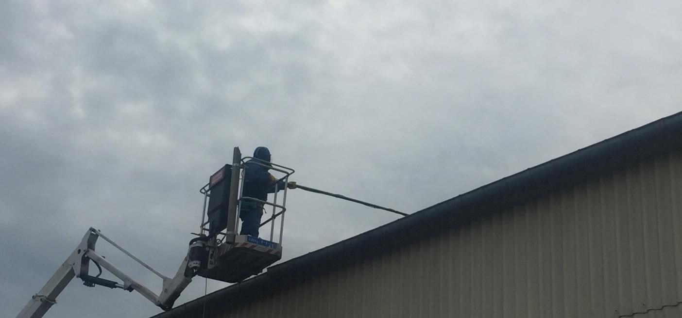 Nos opérateurs utilisent la perche BECKY afin d appliquer un produit démoussant dans les endroits inaccessibles des toitures.