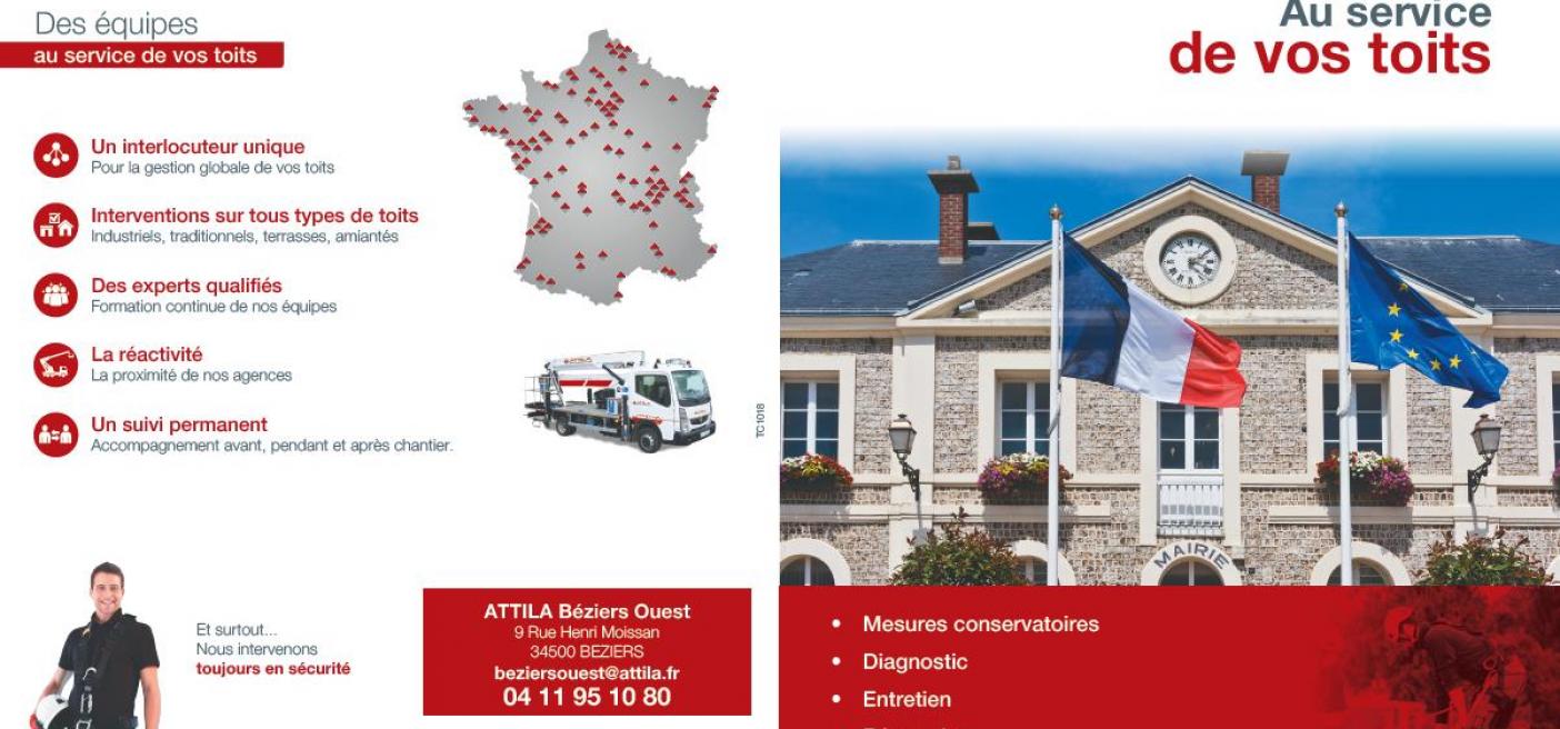 À Béziers et dans sa région, ATTILA accompagne les collectivités locales dans la gestion responsable et durable de leurs toitures.