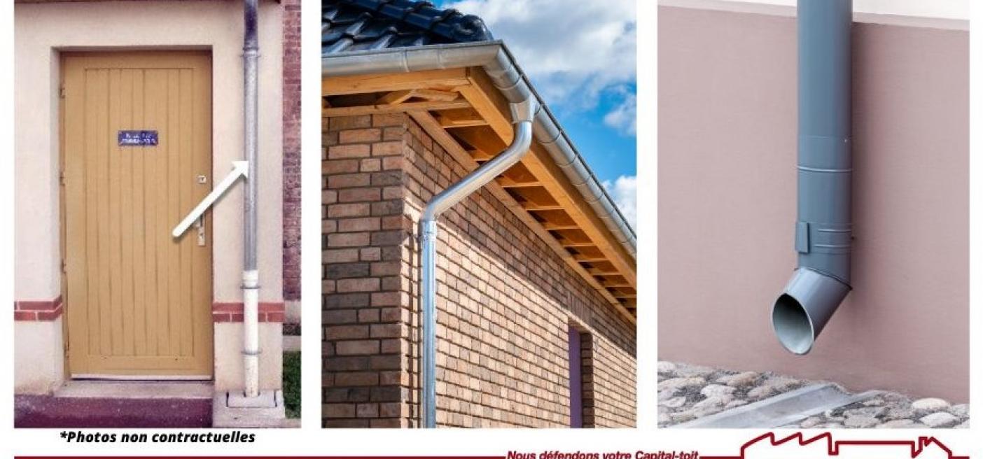Pour éviter que l’eau récoltée par la gouttière ou le chéneau ne ruisselle le long du mur du bâtiment, le tuyau de descente les relient à un réseau de collecte des eaux pluviales. Son installation nécessite l’utilisation de différents raccords, afin d’épouser ou de contourner les formes de la façade et lui éviter ainsi des dégâts causés par le ruissellement.