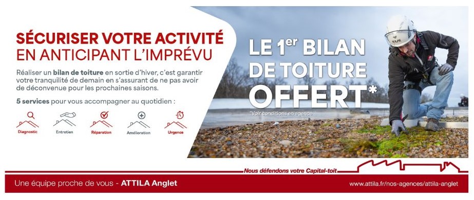 En ce moment, l’agence ATTILA ANGLET vous offre* votre premier bilan de toiture.