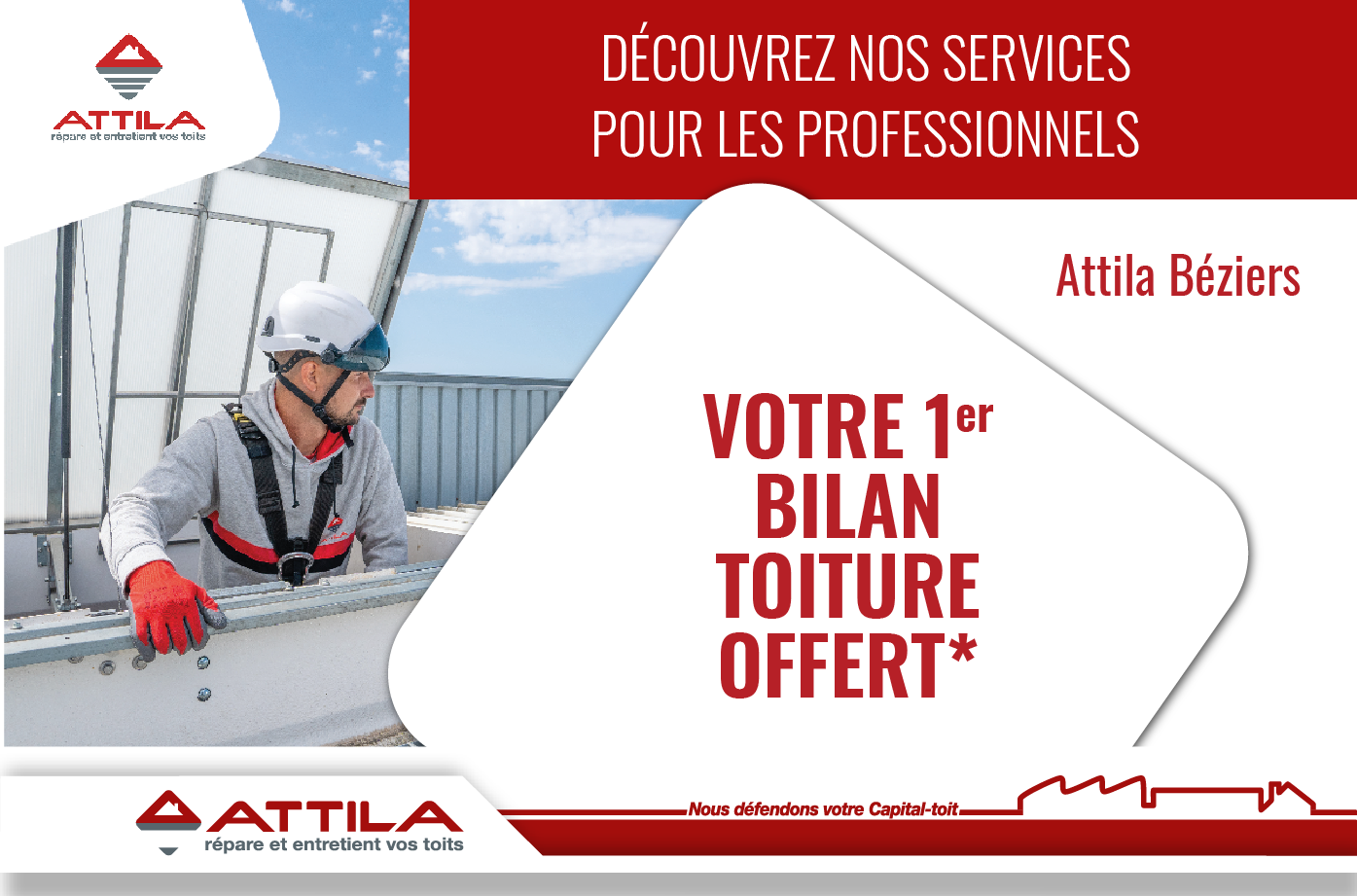 *Bilan de toiture offert : offre réservée aux professionnels et valable du 1er avril au 30 juin 2024, pour des toits accessibles, sécurisés, sans utilisation de nacelle, et non amiantés, dans la limite de 500 m².