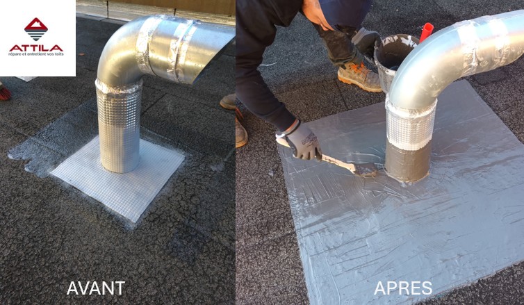 Oh non ! Une vilaine infiltration s'est invitée chez vous, pile au niveau d'une émergence (cheminée, gaine, VMC ...) Pas de panique ! Voici comment on règle ça vite et bien Chez ATTILA !