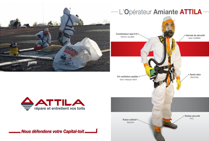 Nos techniciens de toiture Attila interviennent avec une combinaison et ils sont habilité SS-4 (sous section 4).