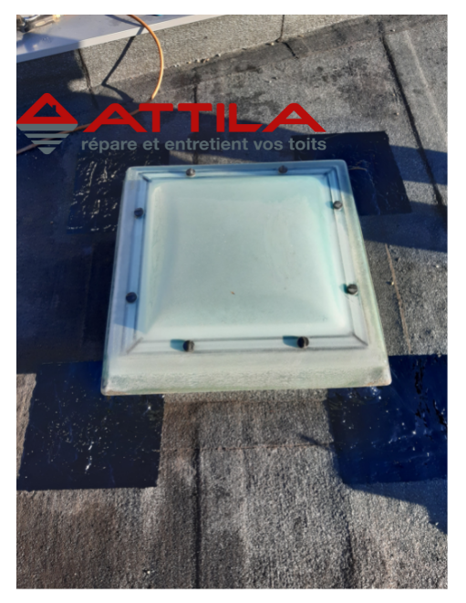 Votre agence ATTILA GRENOBLE intervient lors de la pose de puits de lumière, mais aussi pendant toute sa durée de vie en le maintenant dans des conditions opérationnelles optimales. Lorsque l’étanchéité entre le puits de lumière et la toiture est défectueuse, comme lors de cette intervention en photo, nos Techniciens de Toiture ATTILA la répare ou la remplace.