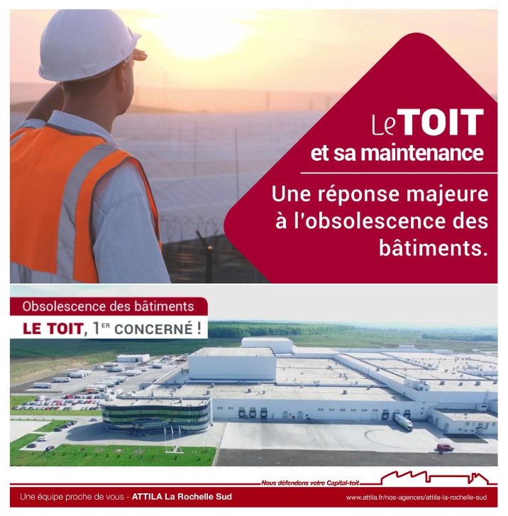 En repoussant le moment de sa réfection, vous réalisez des économies et maîtrisez votre budget en toute sérénité. C’est pourquoi, la maintenance des toits est une réponse majeure à l’obsolescence des bâtiments. L’agence ATTILA LA ROCHELLE SUD vous propose des visites d’entretien annuelles ou bi-annuelles de votre toit. Elles permettent dans un premier temps, de procéder aux travaux nécessaires et dans un second temps, de contrôler que les éléments sensibles de la toiture soient en bon état.