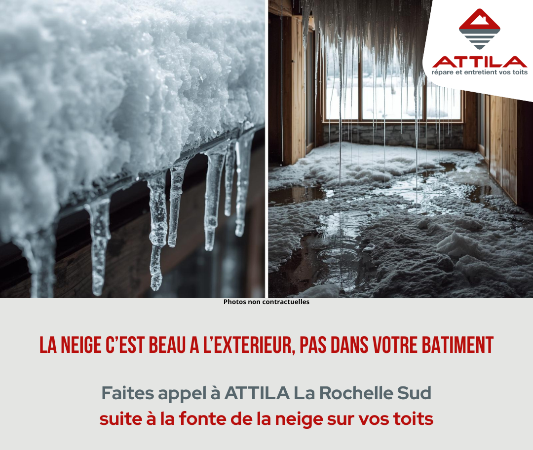 ATTILA LA ROCHELLE SUD : APRES LA NEIGE, LES DANGERS DE LA FONTE SUR VOS TOITS