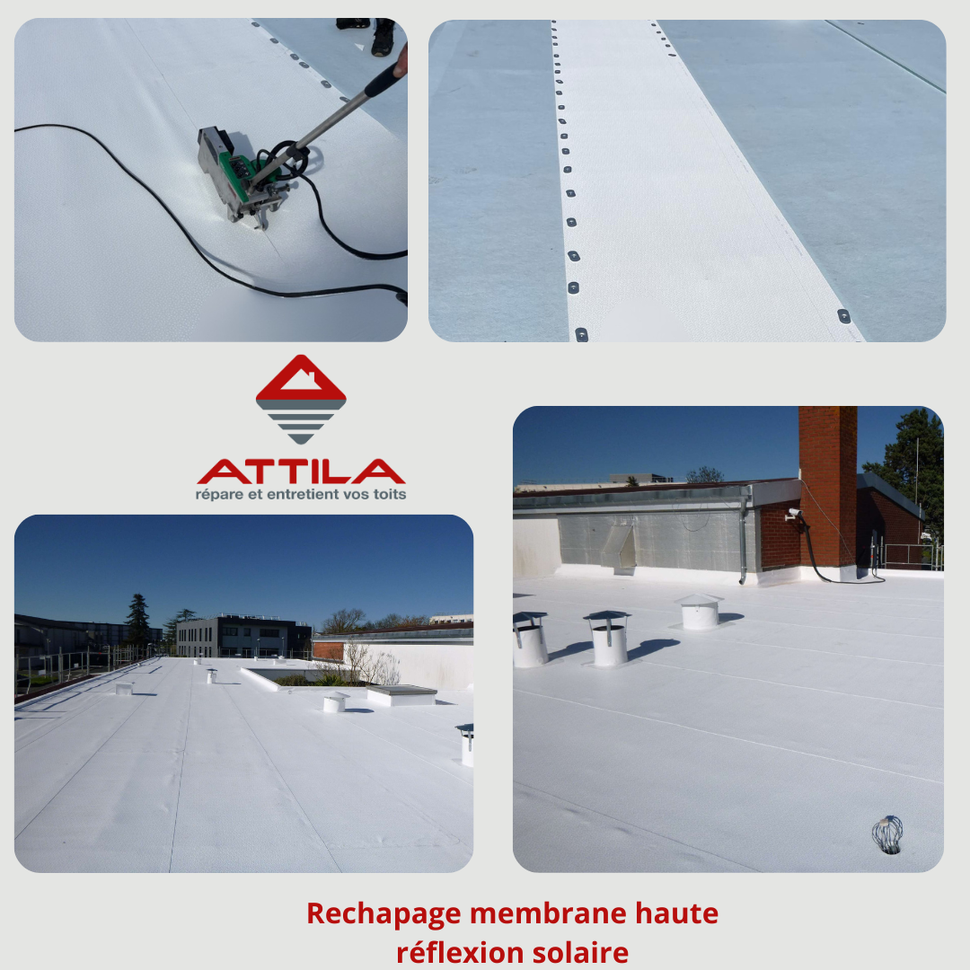 Notre client souhaitait en effet renforcer l’étanchéité de sa toiture plate tout en limitant les effets de surchauffe à l’intérieur du bâtiment en période estivale. Plutôt que de tout déposer, nos Techniciens de Toiture ATTILA ont mis en oeuvre une solution plus rapide, plus propre et plus économique : le rechapage, une technique qui consiste à poser une nouvelle membrane directement sur le complexe existant (après un diagnostic complet bien sûr).