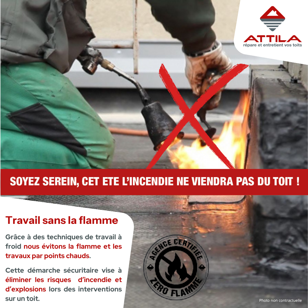 Face à ces constats, ATTILA a engagé une démarche sécuritaire proactive. Nos Techniciens de Toiture sont formés à des techniques sans flamme, à base de solutions innovantes et fiables :