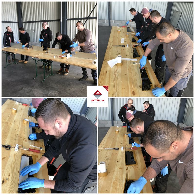 Le 14 février, toutes nos équipes de Techniciens de Toiture ATTILA (TTA) se sont rendus au centre de formation ATTILA situé à Lyon Chassieu pour une journée de formation sur le travail sans la flamme, sujet brûlant d’actualité.
