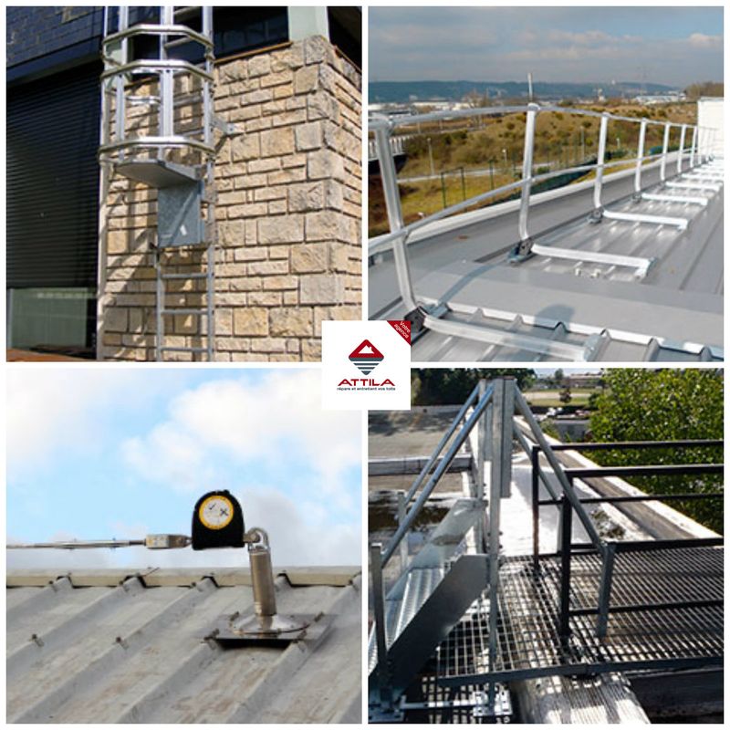 • La sécurisation de toiture : la sécurité sur les toits est la priorité du réseau ATTILA. Nous effectuons la pose, la réparation et l’entretien de tous ces éléments qui augmentent la sécurité en toiture, à savoir : échelles à crinolinesgarde-corpsdispositifs d’ancrage et passerelles saut-de-loup.