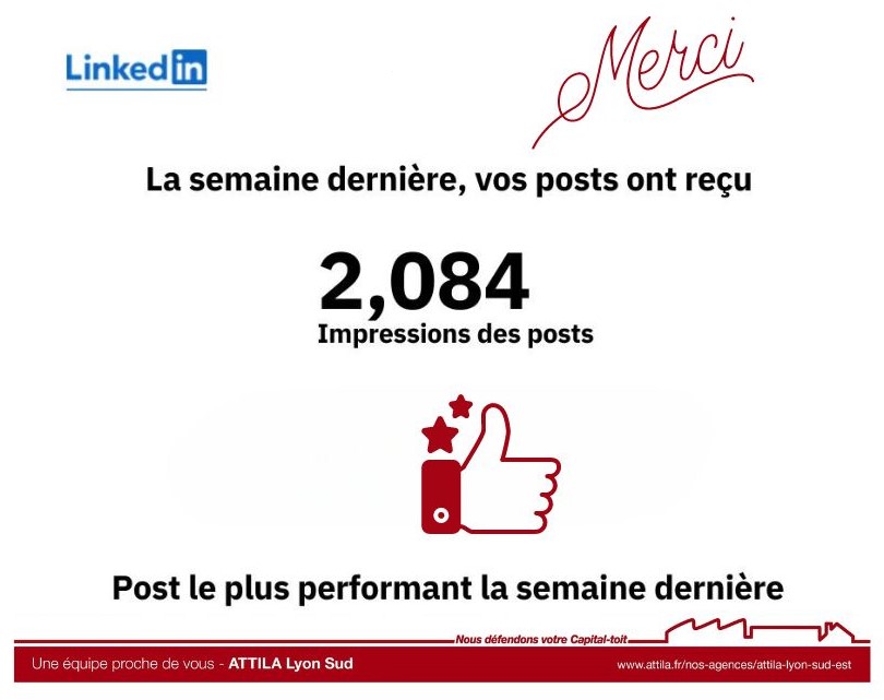 Et si on décryptait les statistiques ? La plupart des vues viennent de chefs d’entreprise, de managers ou d’entrepreneurs sur des entreprises allant de 11 à plus de 5000 salariés. La majorité se situe à Lyon et sa périphérie et vient du secteur de la construction. Nous sommes heureux que vous puissiez découvrir à travers nos publications la vie des agences ATTILA LYON SUD OUEST, EST et PLAINE DE L’AIN !