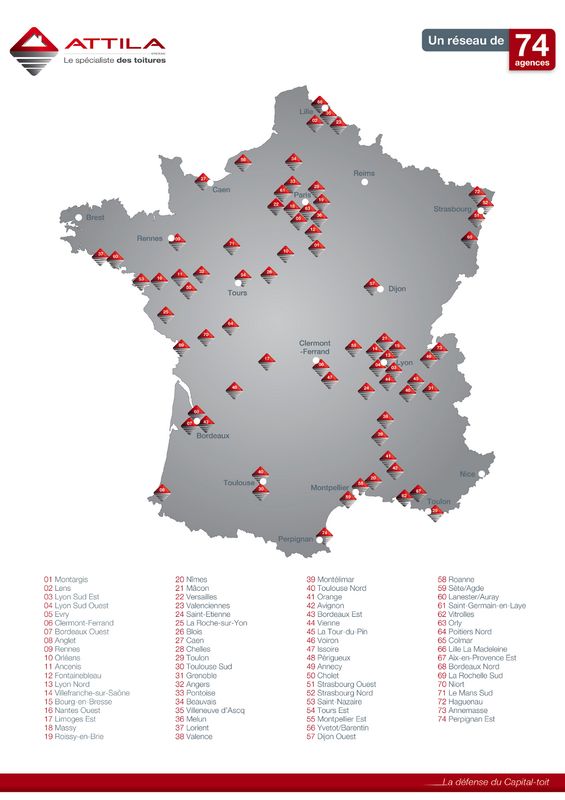 Le réseau ATTILA dispose maintenant de 74 agences réparties dans toute la France.