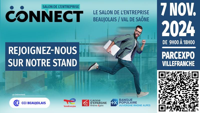 Le jeudi 07 novembre prochain entre 9h et 18h se tiendra le salon de l’entreprise Connect au Parcexpo de Villefranche.