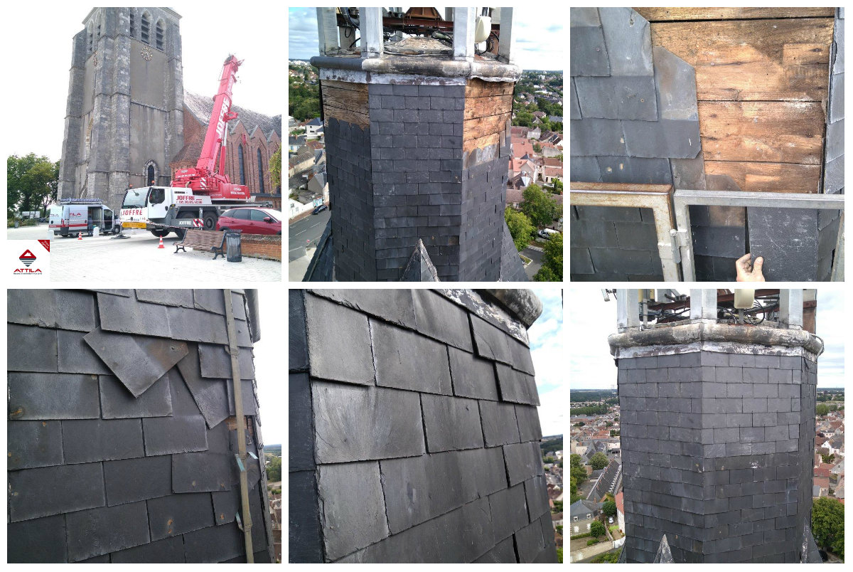 L’agence ATTILA MONTARGIS est intervenue sur le clocher en ardoises de l’Eglise Sainte Jeanne d’Arc de Gien. Pour cette occasion, une nacelle spéciale grande hauteur a été louée pour atteindre les sommets de cette belle bâtisse datant de 1832.