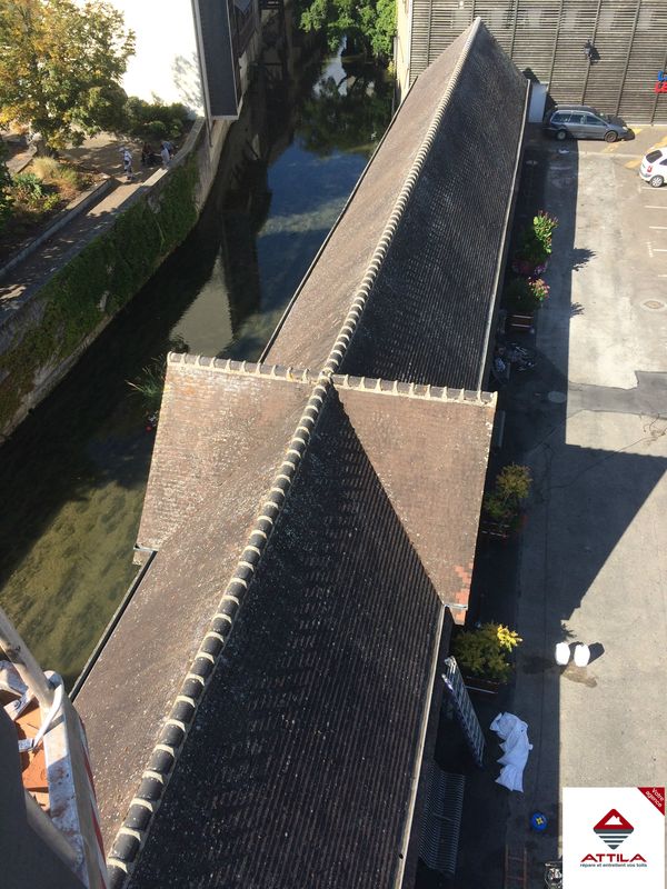 L’autre défi de cette mise en beauté a été de récupérer le produit de traitement dans les gouttières pour éviter qu’il ne se déverse dans l’eau…. défi relevé car ATTILA c’est aussi la protection de la nature et de l’environnement.