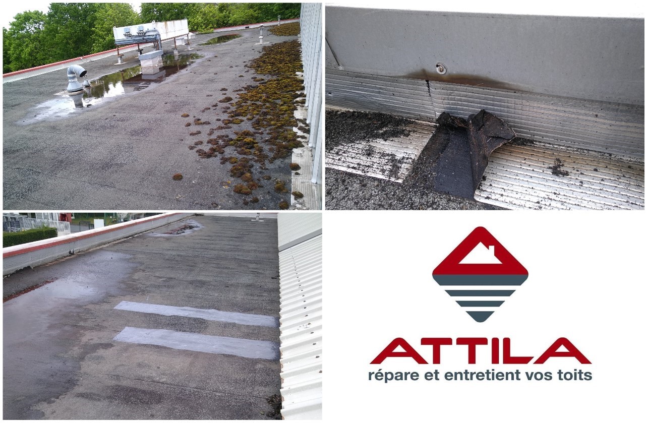 Pour éviter de l’eau qui stagne et la prolifération d’indésirables sur vos toits terrasse, un entretien régulier est plus que recommandé. L’agence ATTILA MONTARGIS est intervenue sur ce bâtiment dont le toit n’avait pas eu de contrôle depuis longtemps et où l’étanchéité était défectueuse par endroit ce qui générait des fuites à l’intérieur.