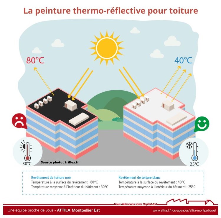 L’agence ATTILA MONTPELLIER EST vous propose actuellement cette prestation en utilisant la solution de toiture réfléchissante et performante ProSolar de TRIFLEX, spécialiste européen en matière de systèmes d'étanchéité et de revêtement.