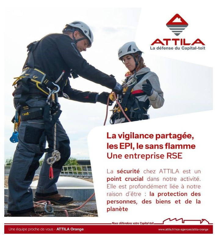 A l’agence ATTILA ORANGE, la défense du Capital-toit est déjà une vision environnementale. Avec la réparation et l’entretien plutôt que la réfection, nous contribuons à réduire le plus possible les déchets produits lors de nos interventions, et il en est de même avec les notions essentielles de vigilance partagée, les EPI ou encore le sans flamme.