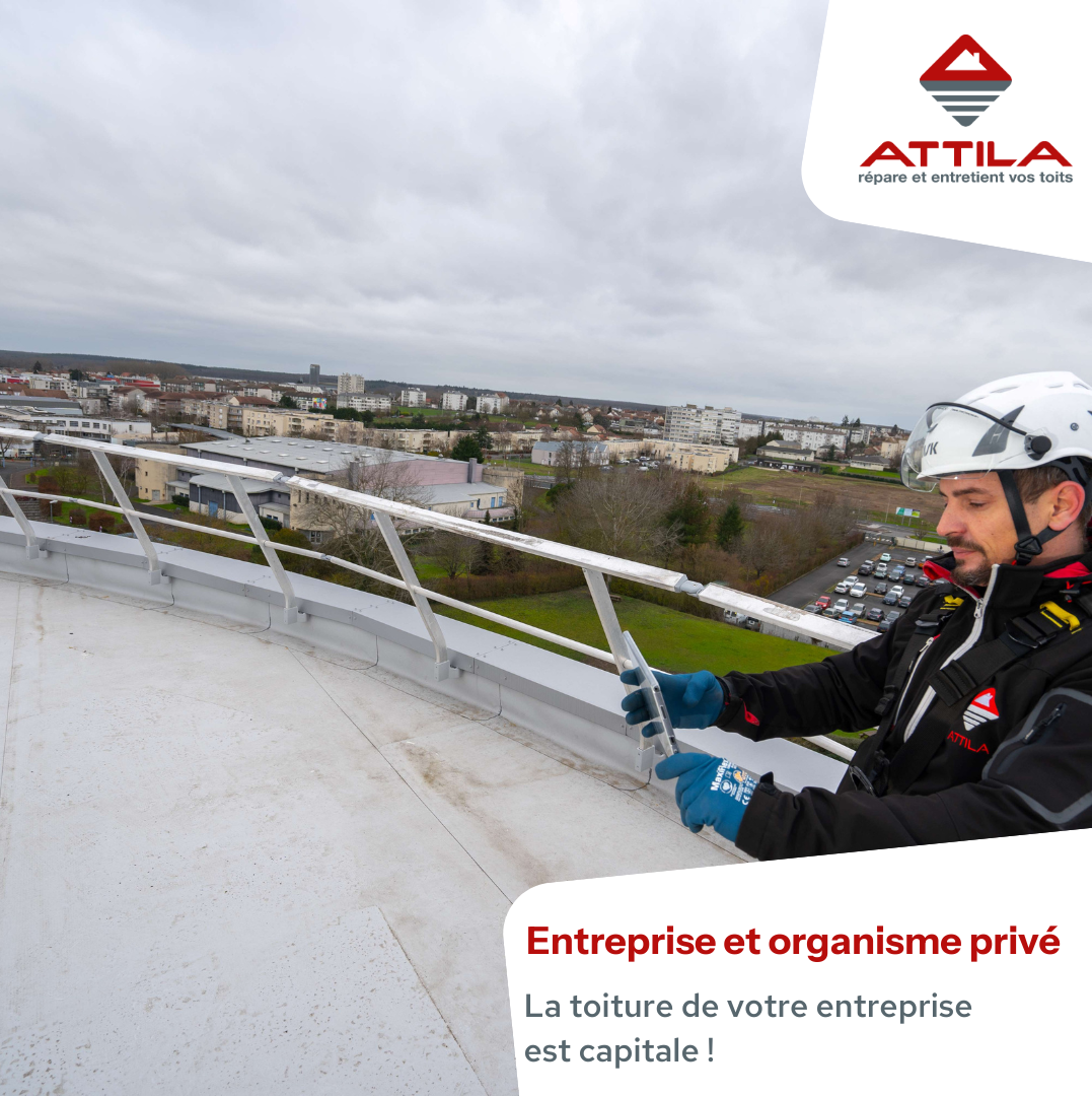 ATTILA est le 1er réseau national spécialisé dans la réparation, l’entretien et la maintenance de tous les types de toits, qu’ils soient industriels, traditionnels, en terrasse ou amiantés.