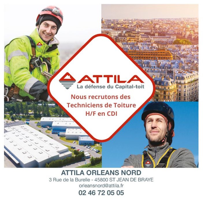 ATTILA ORLEANS RECRUTE DES TECHNICIENS DE TOITURE EN CDI (H/F)