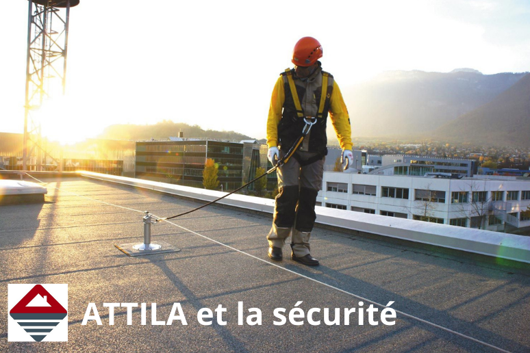 - La sécurité par la formation : grâce à nos centres de formations internes (à Montargis et à Lyon), nos Techniciens de Toiture ATTILA suivent une formation continue destinée à améliorer les compétences sécurité de tous : port et utilisation des Équipements de Protection Individuelle (EPI) et collectives (EPC), CACES 1B-3B, travail en hauteur sur cordes, Sauveteur Secouriste du Travail, habilitation électrique BS, sécurité incendie, travail sans la flamme, montage, démontage et utilisation en sécurité d’échafaudage, prévention sécurité routière…